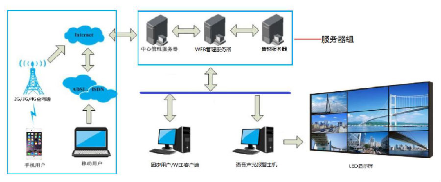 實現(xiàn)前端、區(qū)縣、地市三級垂直監(jiān)管,固定網(wǎng)絡(luò)采用C/S、B/S 方式進(jìn)行訪問,移動網(wǎng)絡(luò)通過手持管理終端(手機(jī)、平板等)進(jìn)行監(jiān)管;